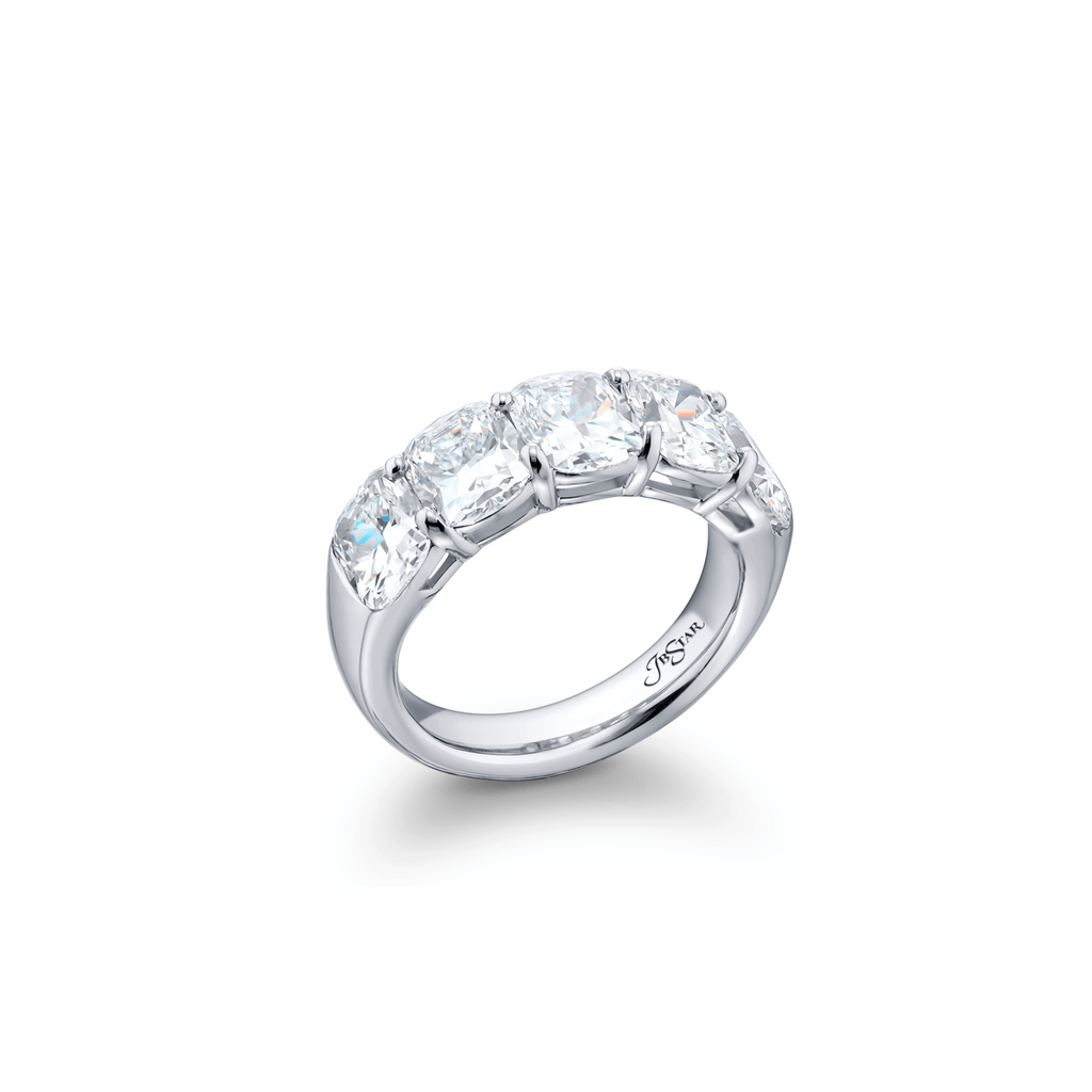 Made with platinum diamond ring. Diamonds, totaling 5.03 carat weight.
