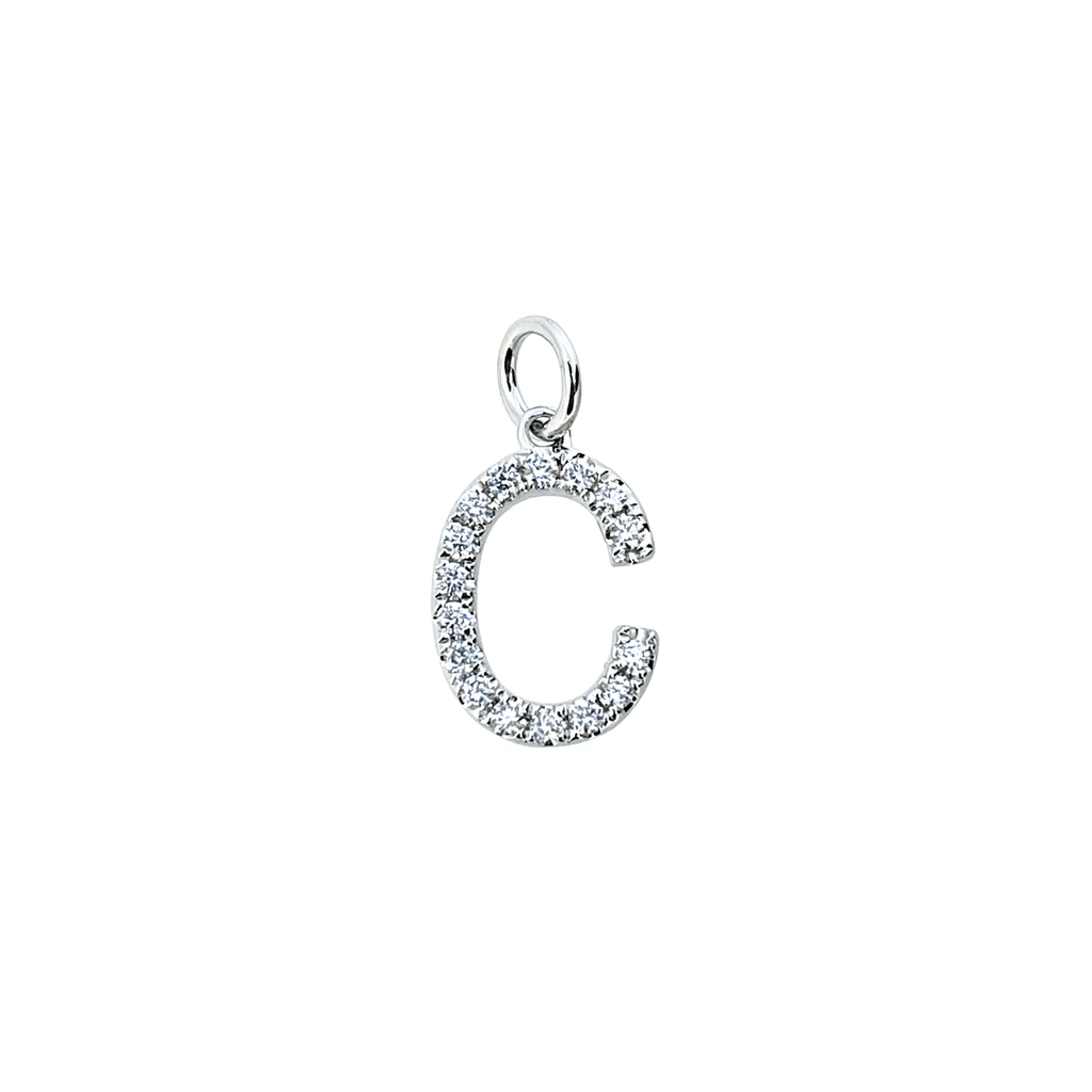 Letter "C" Diamond Pendant in 18 karat white gold. Diamonds totaling 0.22 carat weight