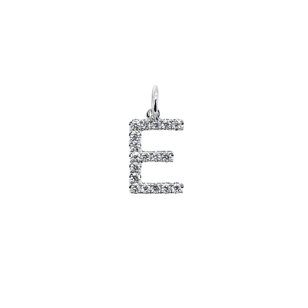 Letter "E" Diamond Pendant in 18 karat white gold. Diamonds totaling 0.28 carat weight