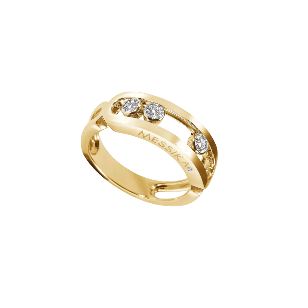 Made with 18 karat yellow gold move classique ring. Diamonds totaling 0.23 carat weight