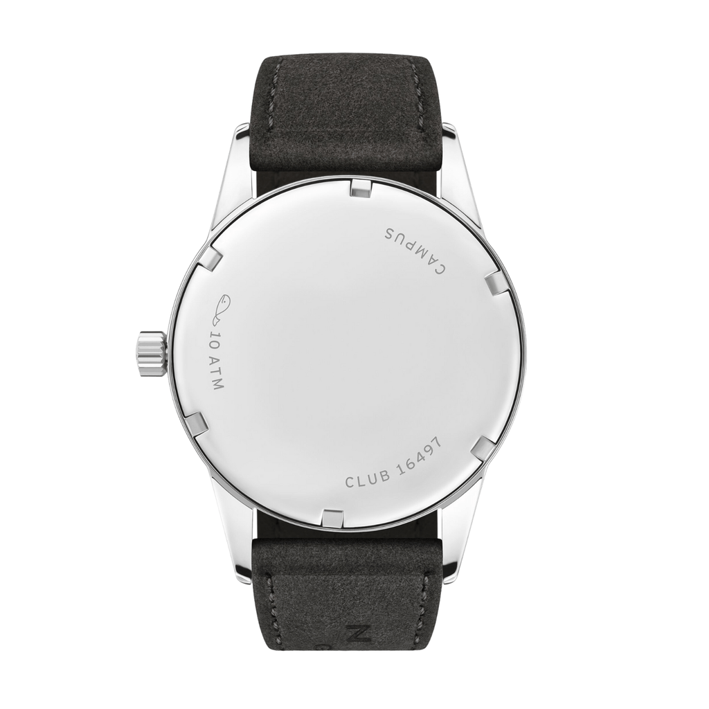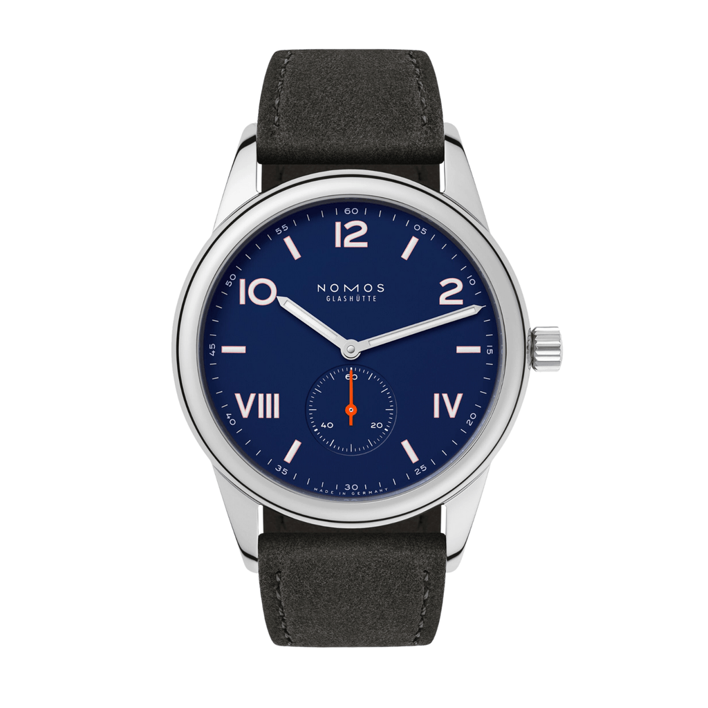 With a slightly larger dial and an anthracite-colored strap, this robust hand-wound watch with a deep blue dial conveys trustworthiness and confidence. It is the ideal gift for graduation and other major milestones in life. With its appealing mix of Arabic and Roman numerals, Club Campus is an all-time favorite—made by NOMOS in Glashütte, Germany.