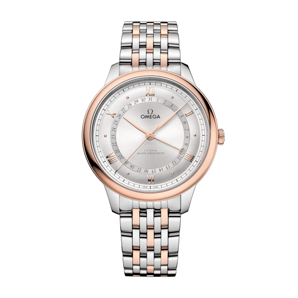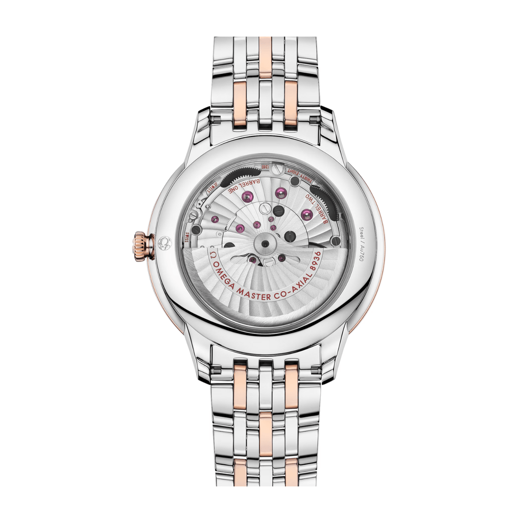 Presented on a stainless steel and 18K Sedna™ Gold bracelet, this De Ville Prestige is powered by the Co-Axial Master Chronometer Calibre 8936, which can be viewed through the sapphire crystal on the caseback.
