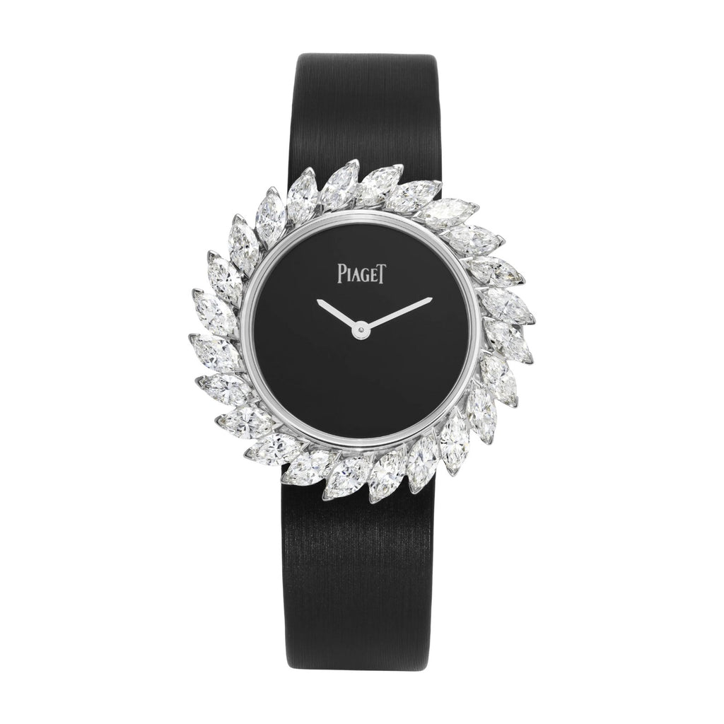 Limelight High Jewelry watch, 31 mm. Case in rhodium finish 18K white gold set with 24 marquise-cut diamonds (approx. 3.84 ct). Buckle set with 13 brilliant-cut diamonds (approx. 0.05 ct). Manufacture 430P ultra-thin hand-wound mechanical movement.