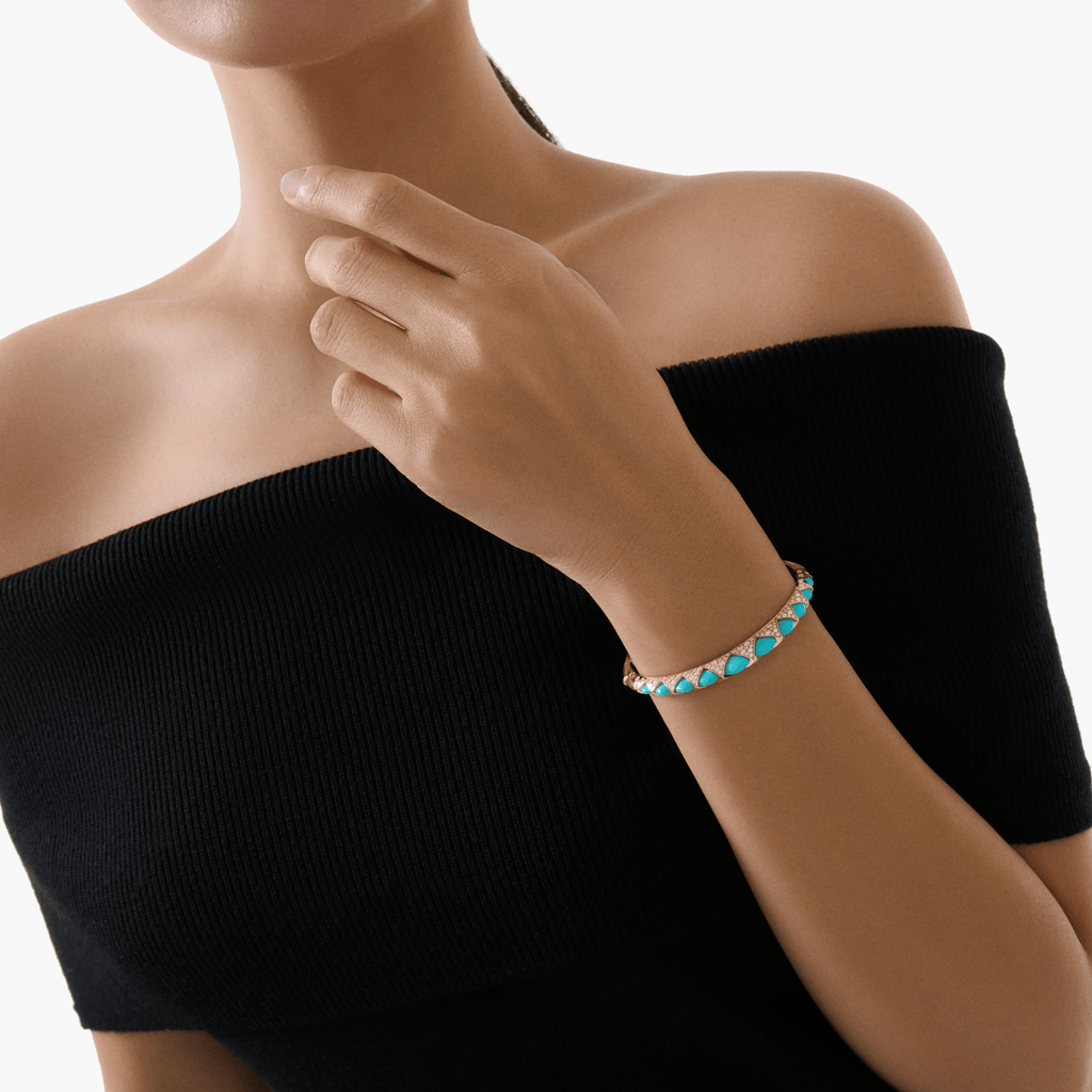 Piaget Sunlight bracelet in 18K rose gold set with 10 turquoises, approximately 1.24 carat weight and 176 brilliant-cut diamonds approximately 1.7 carat weight.