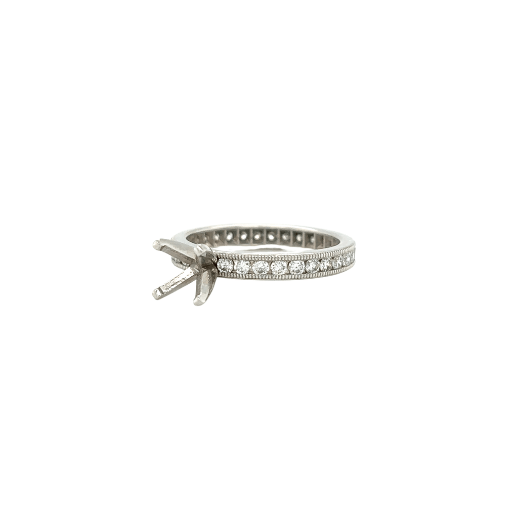 Platinum 4-prong diamond mounting ring. Diamonds totaling 0.65 carat weight.
