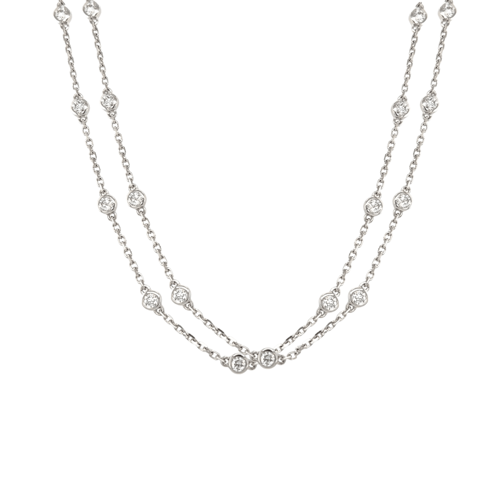 Made with 18 karat white gold diamond necklace. Diamonds totaling 1.97 carat weight. The length of the necklace measures 18 inches.