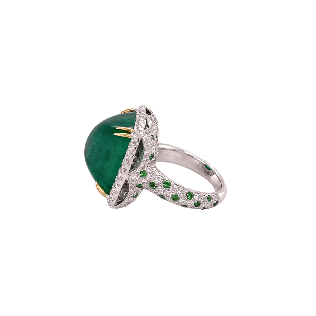| Gemstones | Sugarloaf emerald, tsavorite, diamonds |