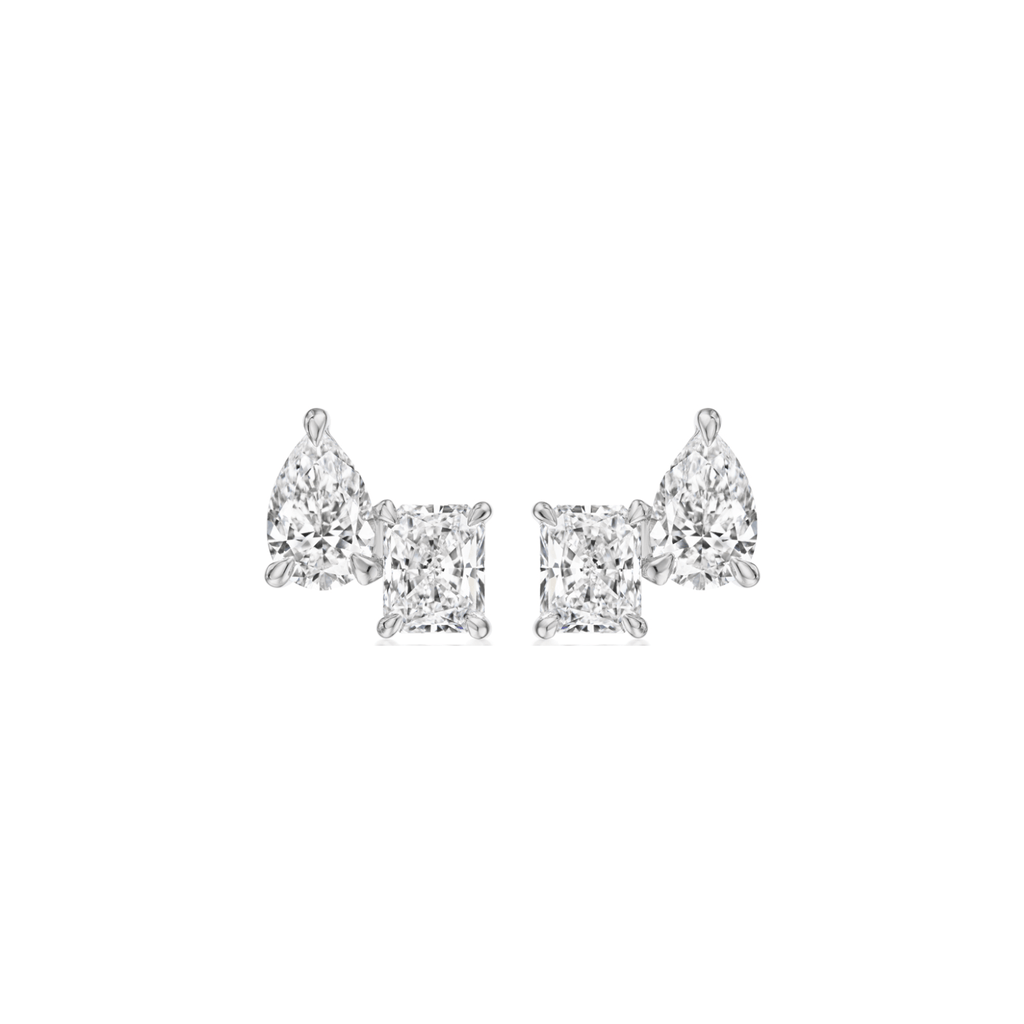 Made with 18 karat white gold raidant and pear-shaped diamond earring studs. Diamonds totaling 2.08 carats. G color, VS2 and HS1 clarity.