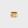 18 karat rose gold two row Pois Moi ring with diamond accents.