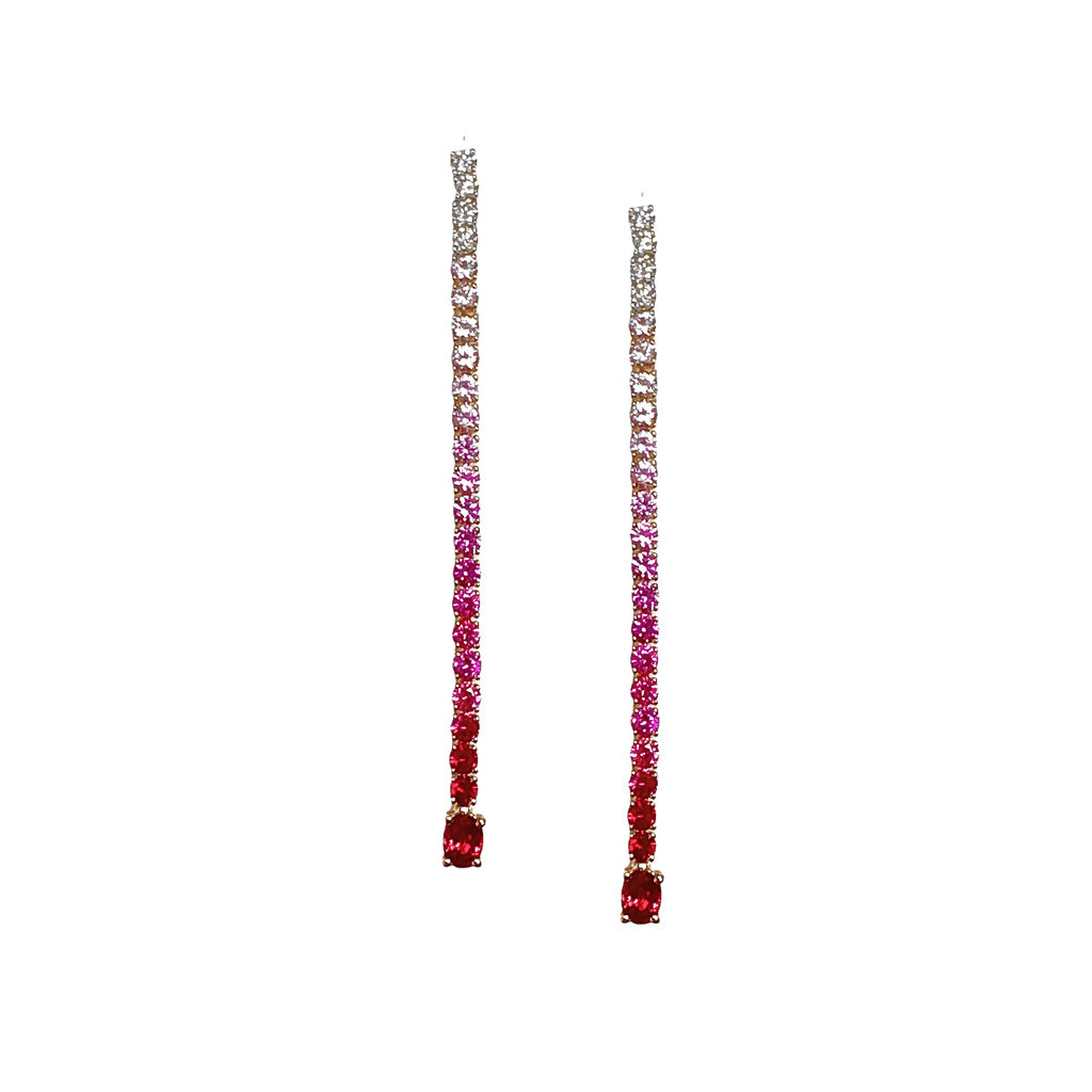 Made with 18 karat white and rose gold ruby and pink earrings diamond earrings. Ruby totaling 0.69 carat weight. Pink sapphire 1.33 carat weight. Diamonds totaling 0.27 carat weight.