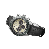 Crafted with a 42mm stainless steel case and a super hard coating, this timepiece features a striking silver dial. Boasting a chronograph and date display, it also runs on automatic movement with a 45-hour power reserve. Finished with a sleek...