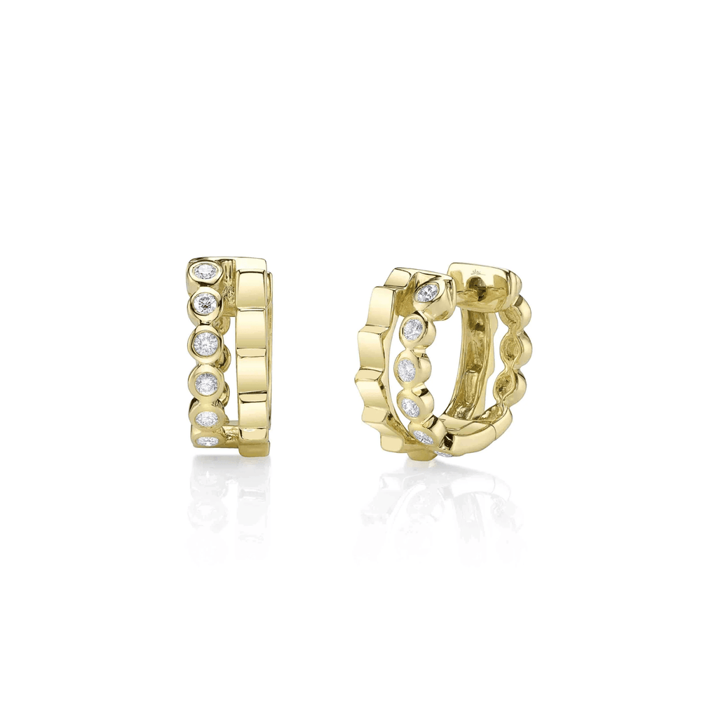 Shy Creation Diamond Double Huggie Earrings in 14 karat yellow gold with diamonds totaling 0.18 carats.