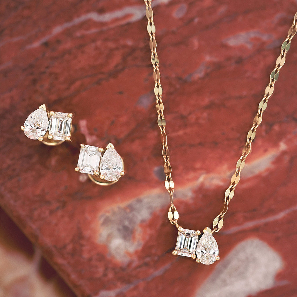 Shy Creation Diamond Emerald Pear Necklace 0.42 CT