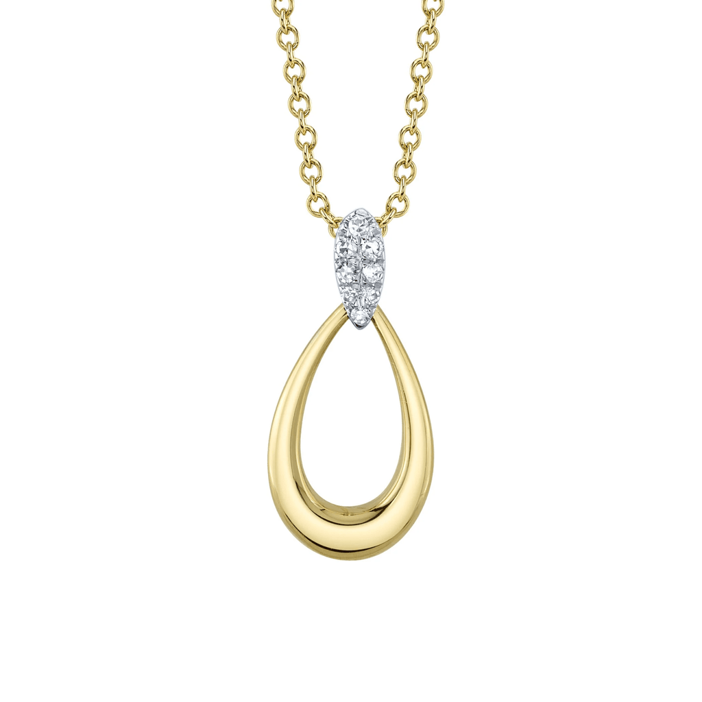 Shy Creation Diamond Emerald Pear Necklace in 14 karat yellow gold with diamonds totaling 0.42 carats.