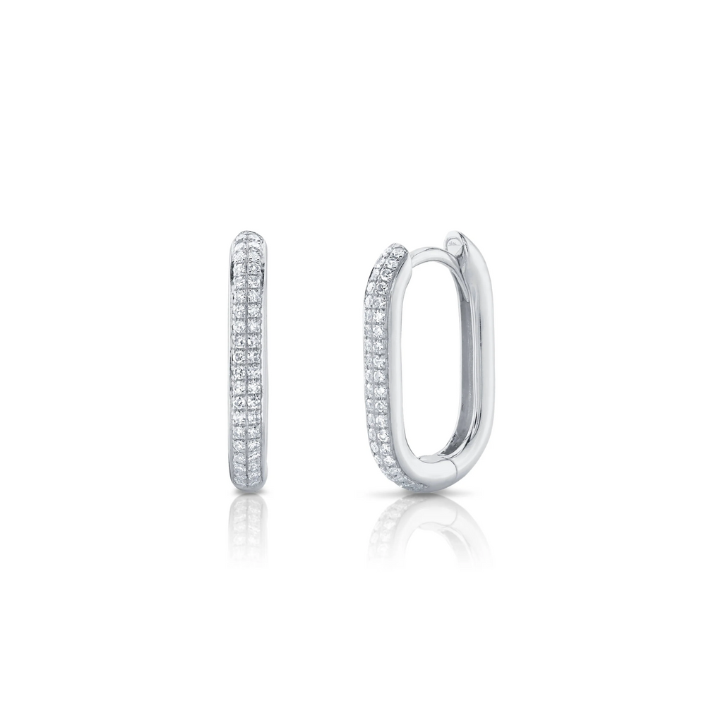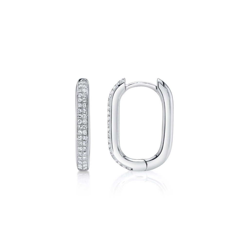Shy Creation Diamond Oval Hoop Earrings in 14 karat white gold with diamonds totaling 0.18 carats.