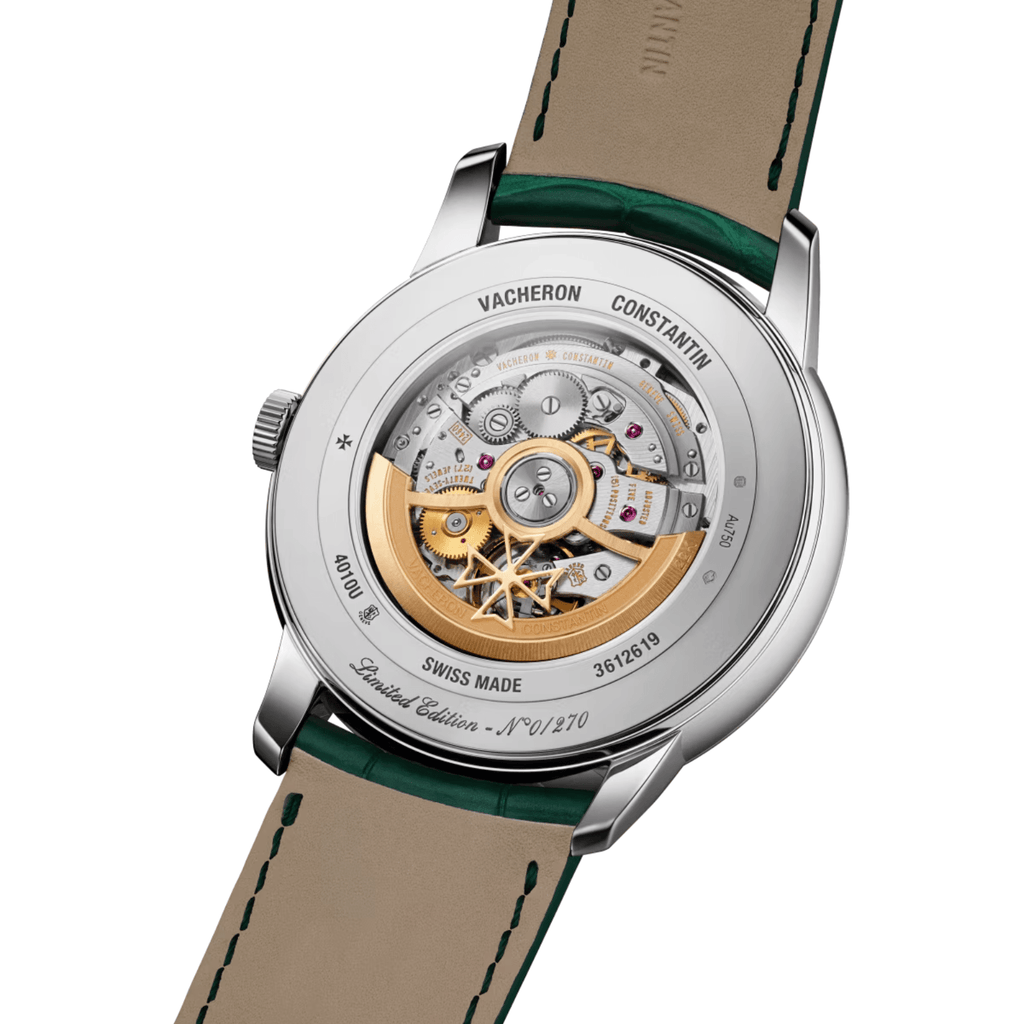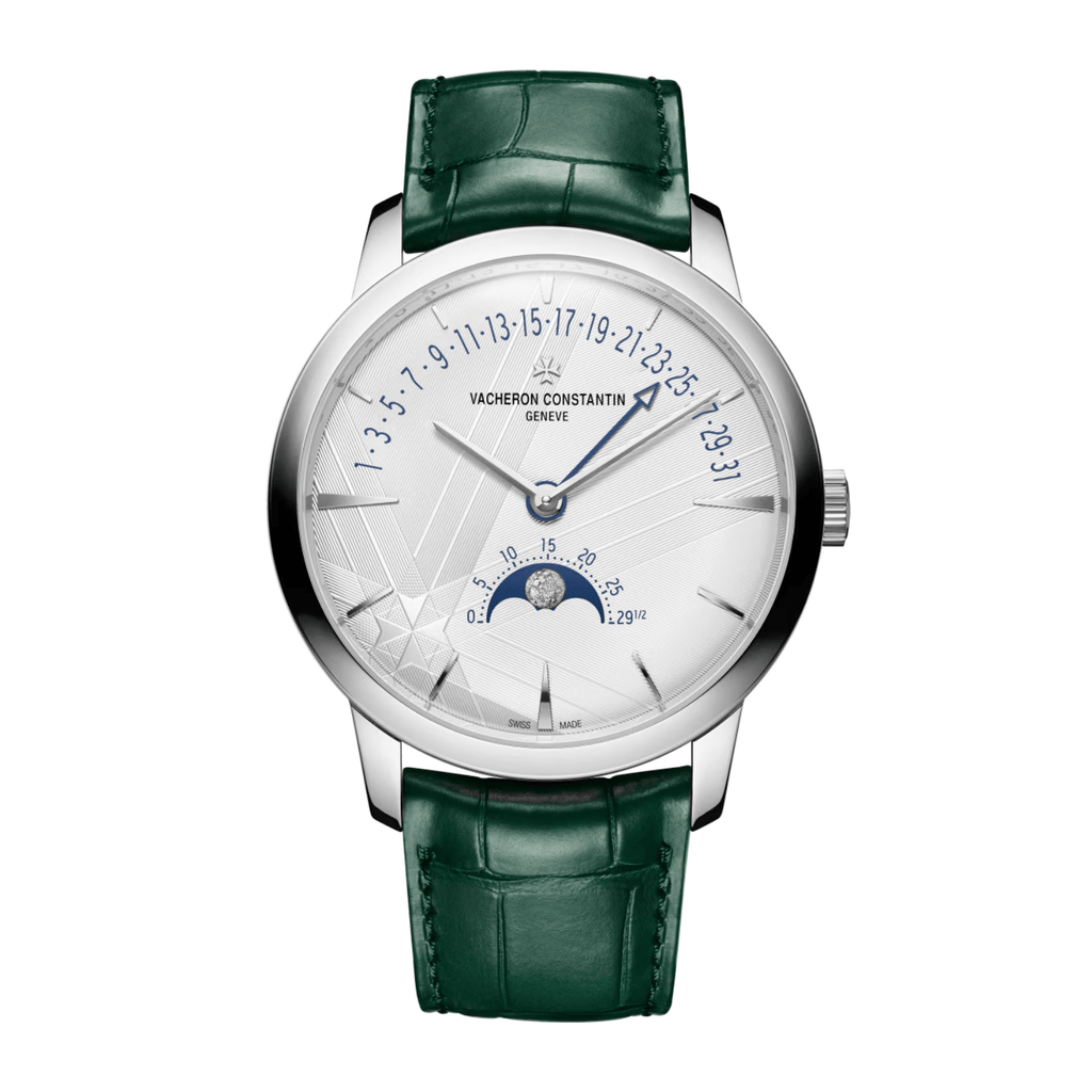| Dial | Silver-toned dial adorned with the 270th anniversary pattern inspired by the Maltese cross. Convex external zone. 18K gold moons. Retrograde hand-type date. 18K gold bi-faceted baton-type hour/minute hands. 18K gold blued date hand. 18K gold applied hour-markers. |