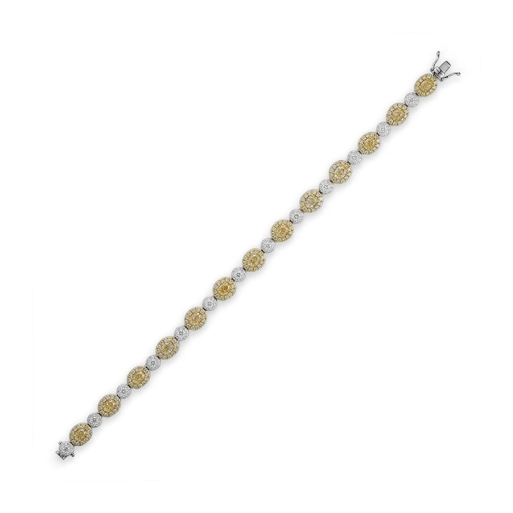 Made with 18 karat white and yellow gold with yellow diamond totaling 6.63 carats and white diamonds totaling 1.34 carats. The length of the bracelet is 7 inches.